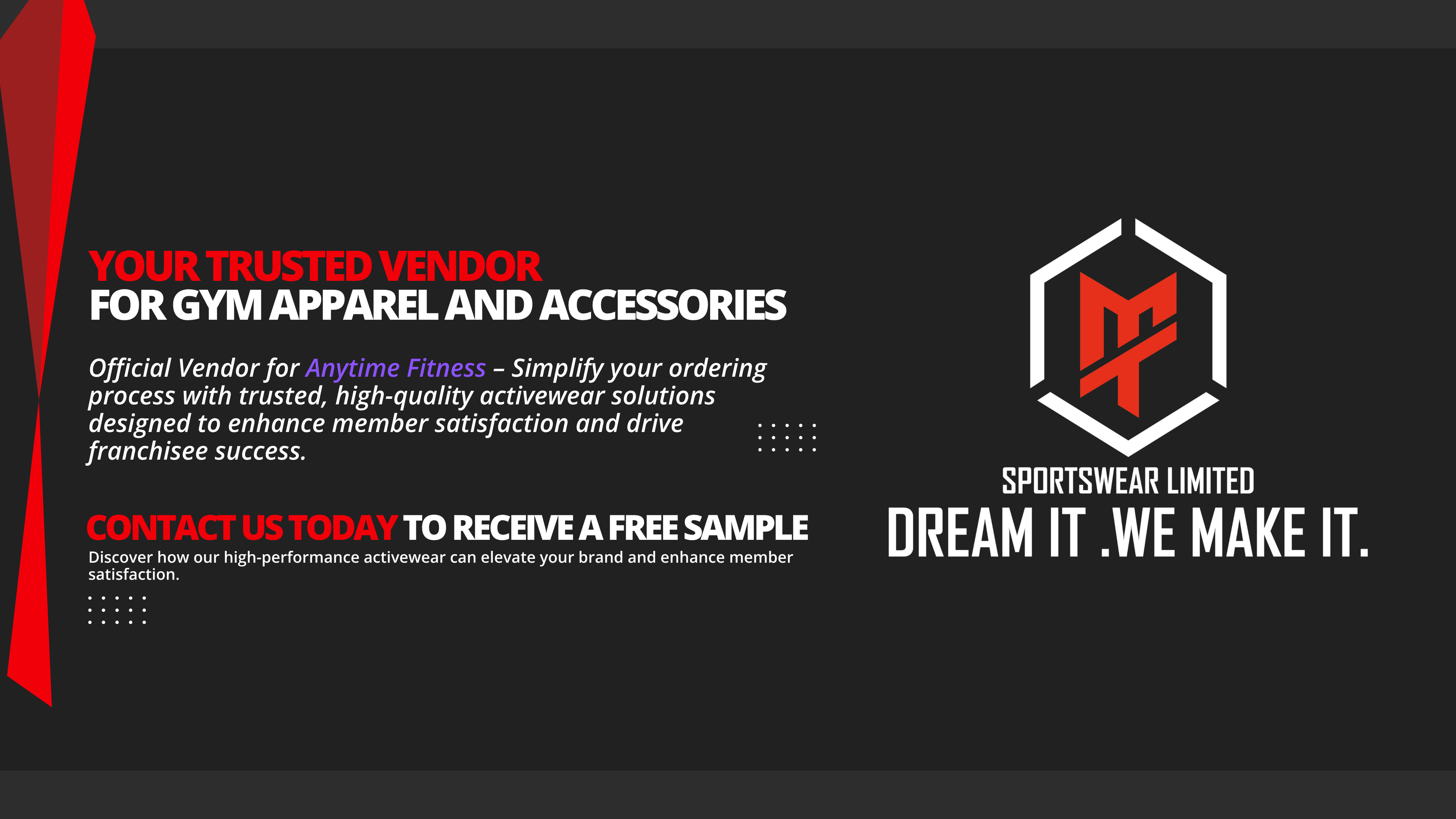 At MT SPORTSWEAR LIMITED, we are dedicated to delivering high-quality products and services that meet the needs of gym brands and franchisees.