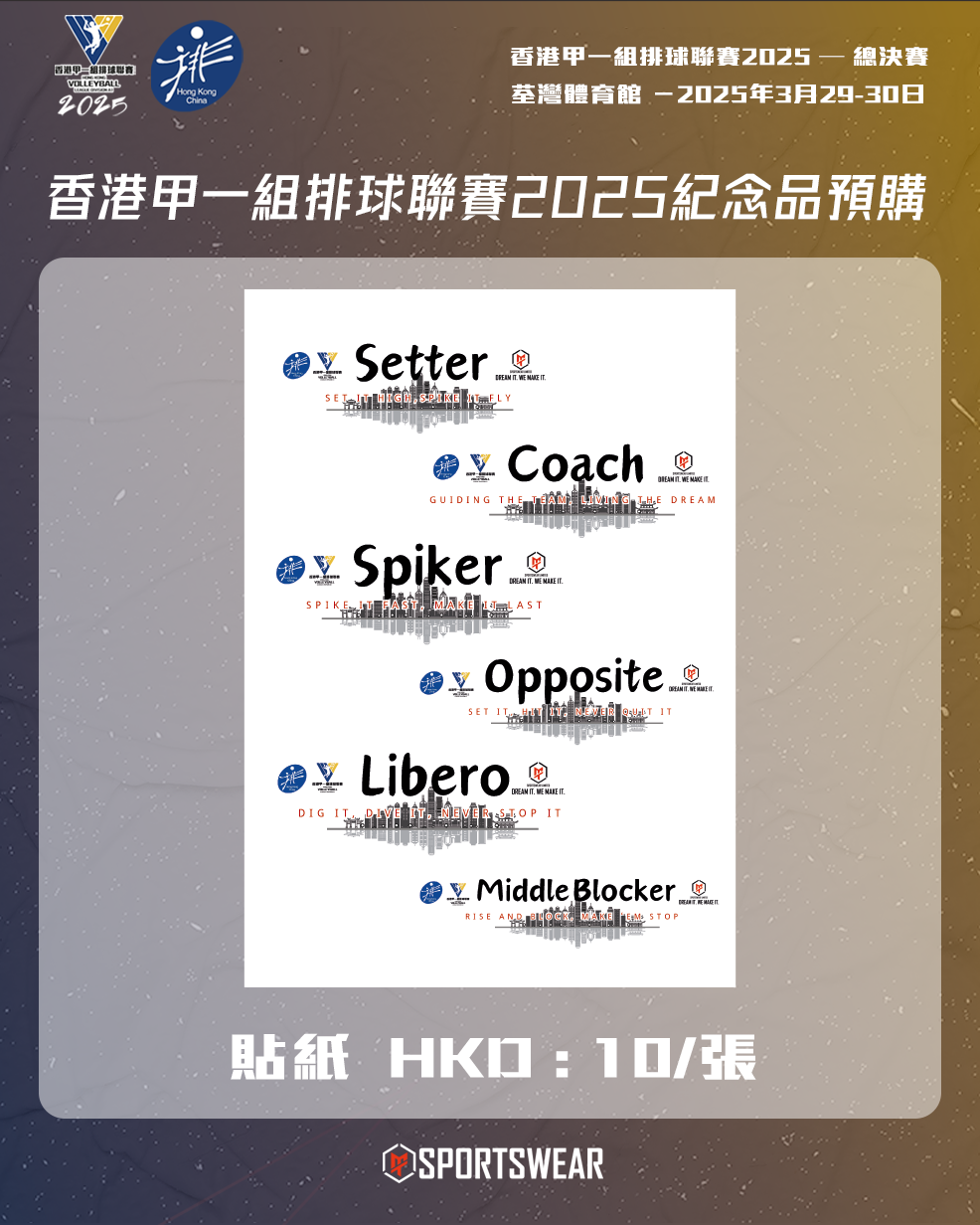 【預購】香港甲一組排球聯賽2025紀念貼紙